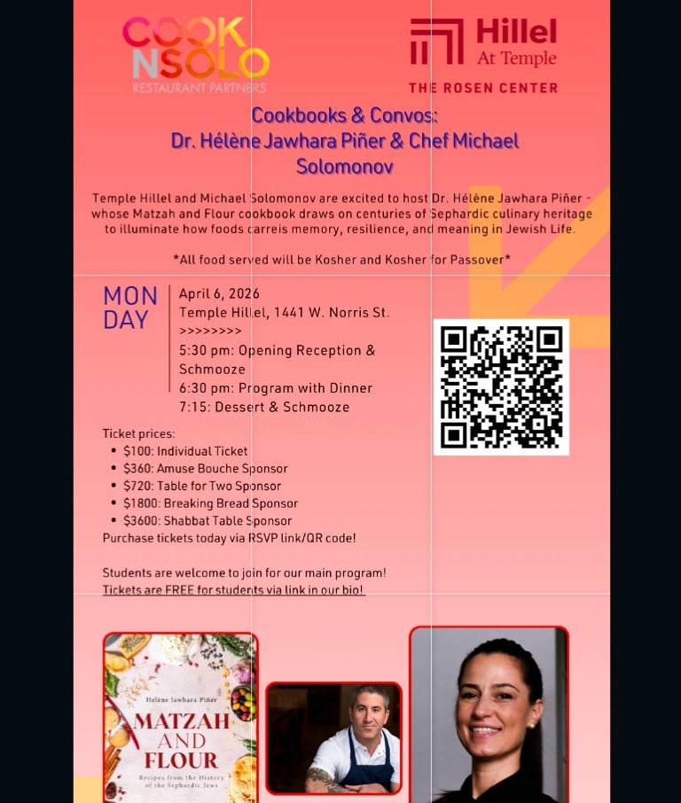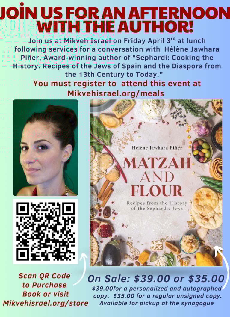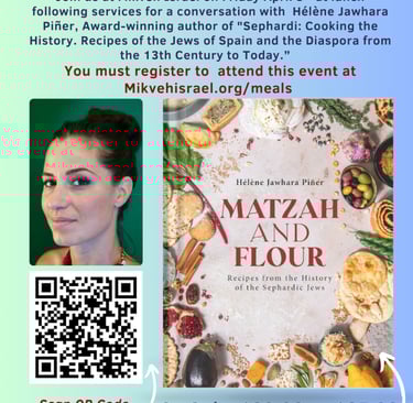 Inspired by Dr. Jawhara Piñer’s cookbook Matzah and Flour, this conversation will explore centuries of Sephardic culinary heritage and how food carries memory, resilience, and meaning in Jewish life.